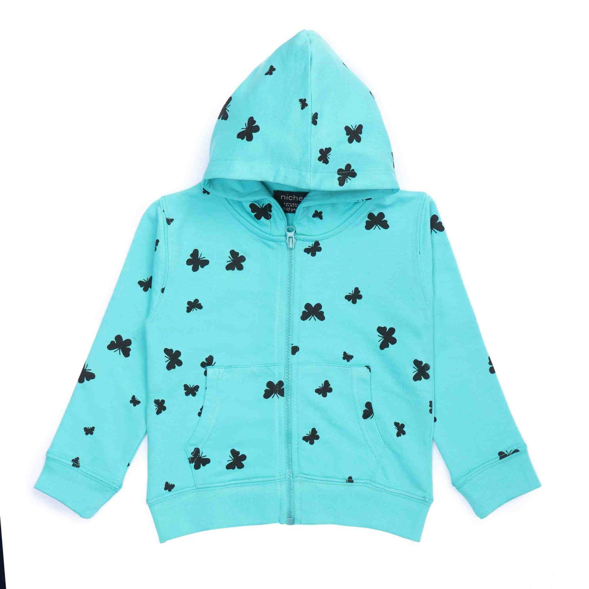 Felpa bambina French Terry leggero Tiffany con cappuccio - Stampa farfalle 2-10