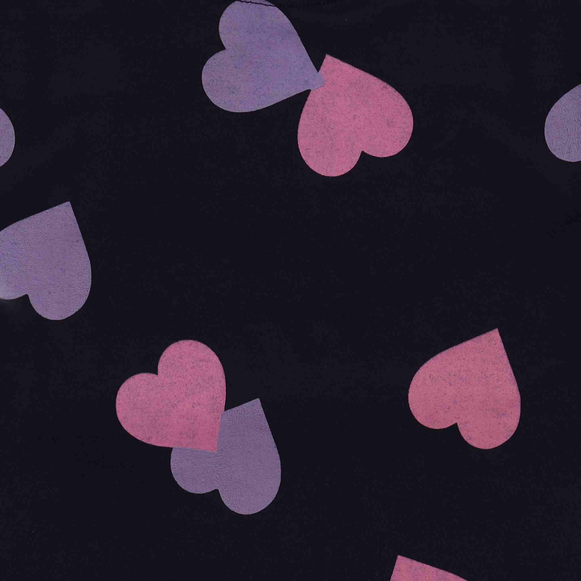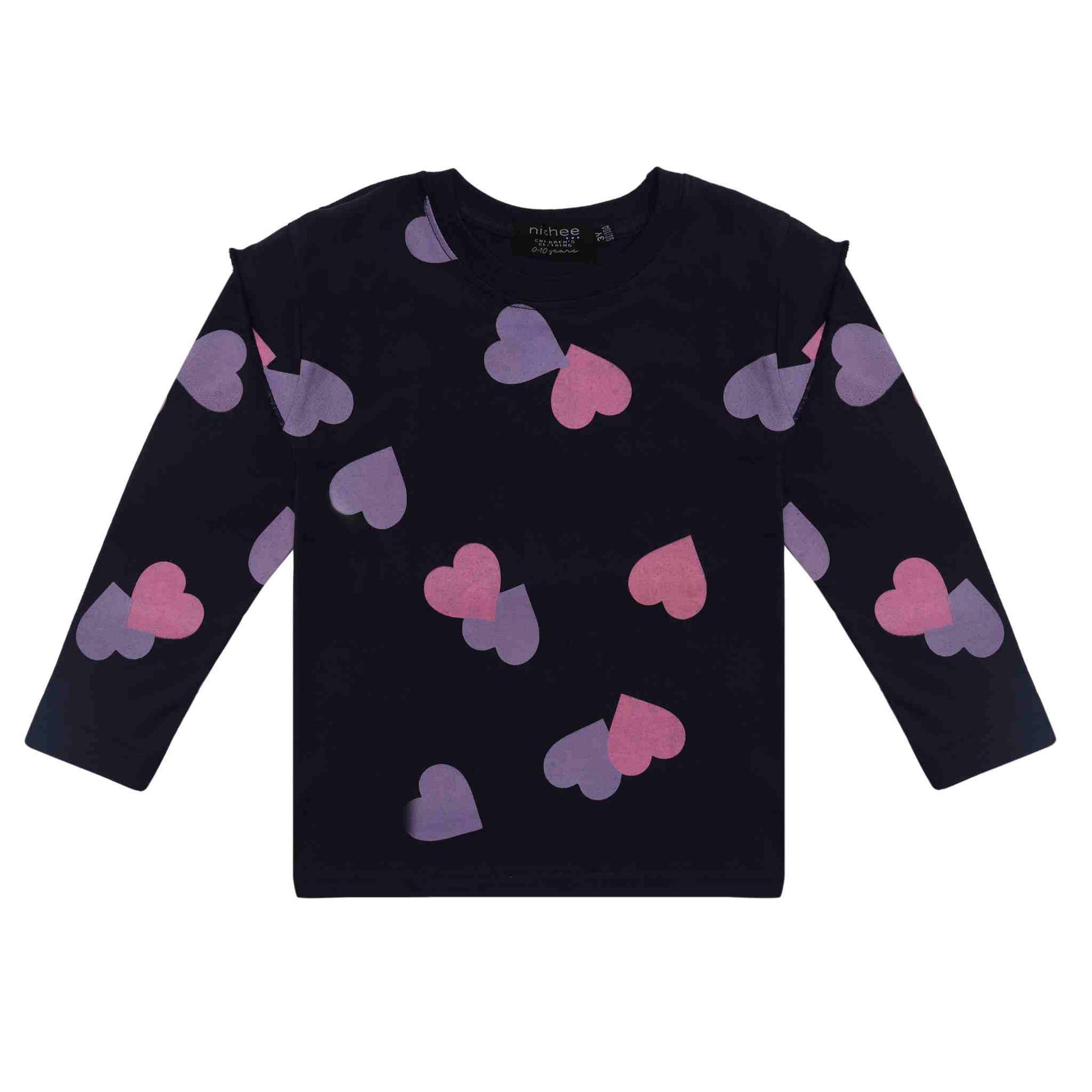 Maglia bambina a manica lunga in jersey di policotone blu navy con adorabile stampa cuori colorati. Morbida, traspirante e perfetta per ogni occasione, dal gioco alla scuola.