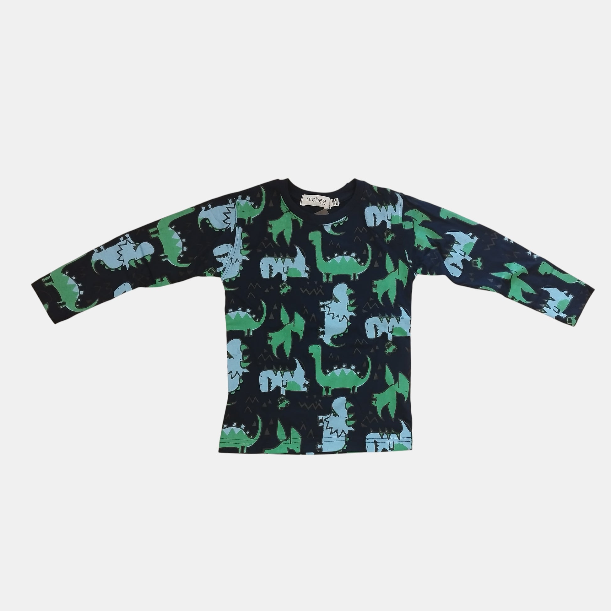 Maglia Manica Lunga Neonato Bambini Stampa All Over Dinosauri - Jersey Policoton